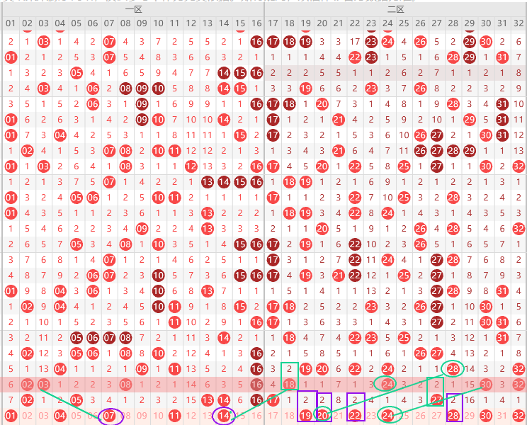 二区上期开出2码,本期看好7尾出重号,17 27二出一看好27不喜欢就试试17,其次隔2期号出2期,本期可以关注一下19 20 22 24 28符合,24形态好看,上图已勾画,边号没断,本期边号只有18 26 28三出一,龙头1开头17 18 19三出一,昨天19很好没出本期追一期, 本期关注六码 17 24 26 27 28 30