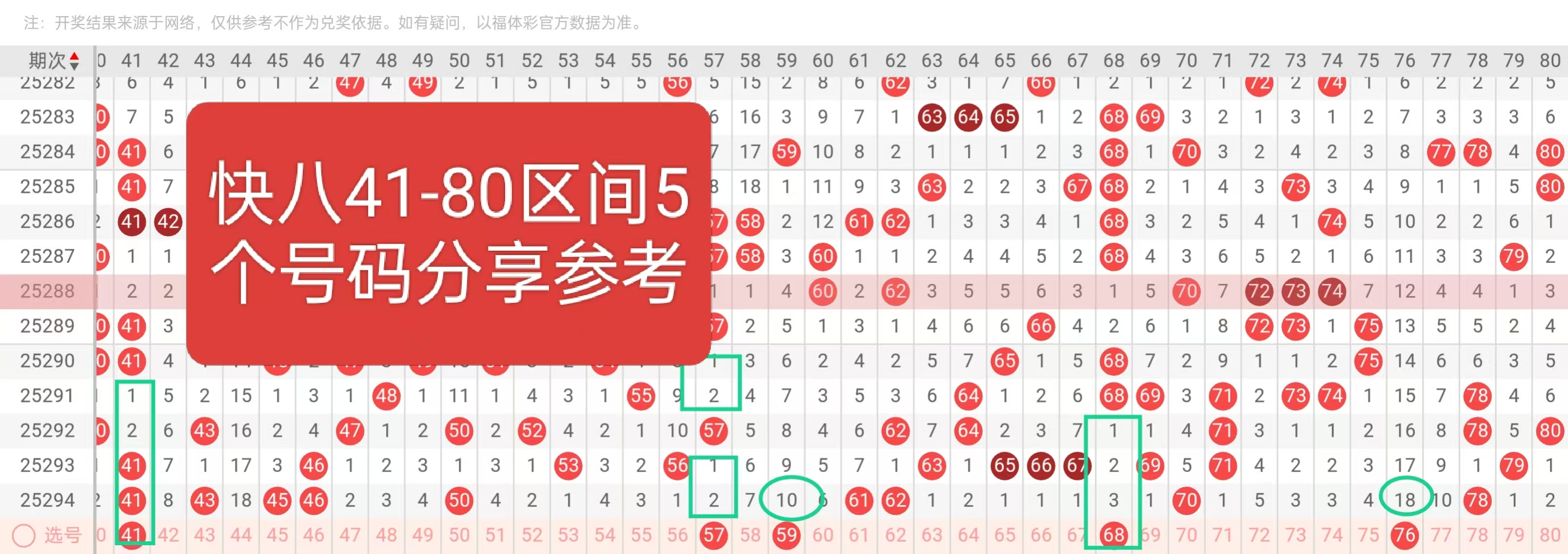 连号(连续号码)在快乐八中常见,但本期分析未刻意选择连号,而是注重号码的分散性。分析号码分布在11-76之间,区间覆盖较广:小号区间(11-40)有5个号码,大号区间(41-76)有5个号码,无密集连号组。这种分散策略减少了因连号缺失带来的风险,同时各个区间都有代表,如33-36区间有冷号,57-59区间有热号,整体分布合理。