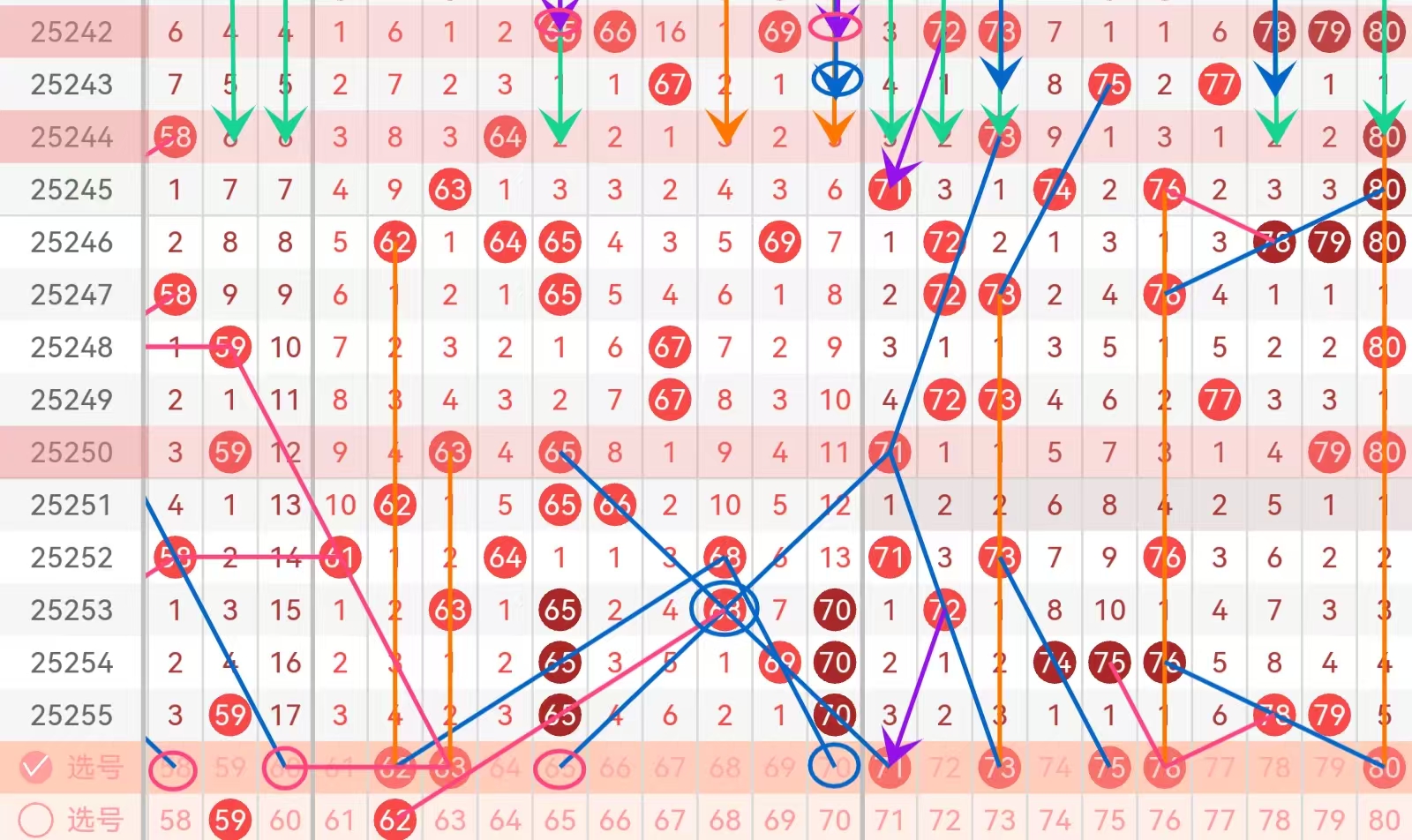 四区间给到主做号码球:62 63 71 73 75 76 防守号码球:65 70;