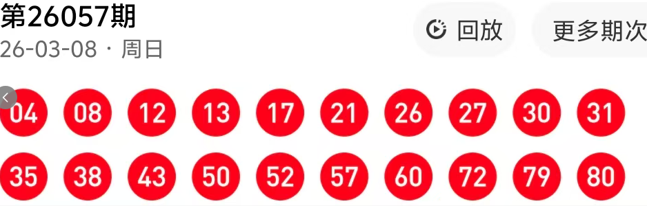 快乐8第058期推荐 上期中出43 57 大家跟上吃肉