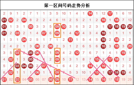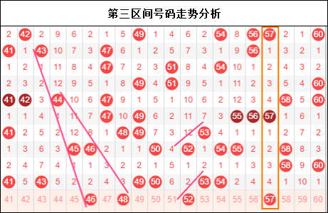 第四区间思路:四区上上期出现隔期补号,上期开始叠加重号,那是不是意味着重号成了当前的热门。另一个思路,区间依旧是前轻后重,且走势纵横交错。看似形成了大好走势,实则我们通过前期走势分析发现,往往在这样的走势中区间就出现了转移,变成了看不懂的思路。而且会呈现出一些比较明显的号码走势,所以四区简单对待,永远是最正确的思路。