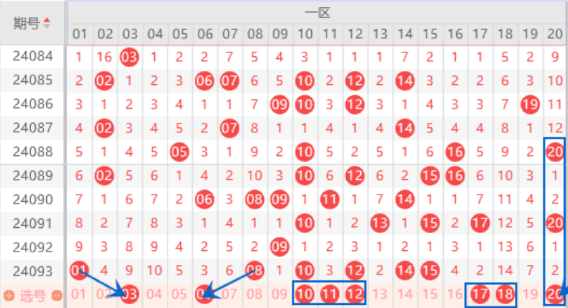 本期的03号数字是属于遗漏9期的号码,本期遗漏9期的号码有4个,本期出一个的机会是有的,我们重点关注一下03 25号数字的出号情况就行了。本期的06号数字我们注意一下出号情况,本期的07号数字不出,那么大概率会出06号数字了,我们注意一下。上期开出了08 10 12 14 15号数字,我们注意一下出重号的情况,重点关注一下10 12号数字出重的情况。本期的20号数字是属于空二对称的号码,本期空二对称的号码有3个,我们注意出一个号码的情况。