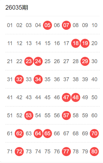26034期命中9码 19,30,31,32,43,44,48,66,80