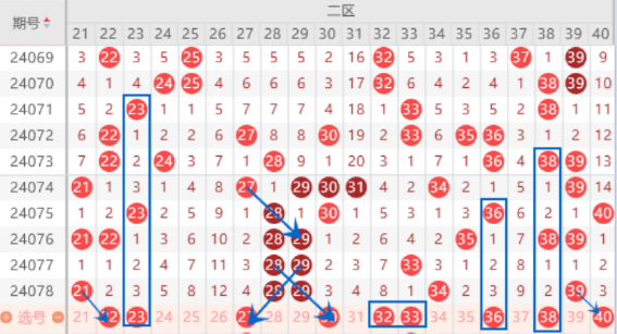 本期的22号数字是属于空二对称,23号数字是属于空三对称,本期这里有很大可能是要出一个号码的,我们要重点关注一下。本期的27 30号数字我们要注意一下出号情况,可以同时防守一下27 30 33号数字同出的情况。本期的32号数字是属于遗漏8期的号码,本期遗漏8期的号码有4个,本期出一个号码的机会很大,我们重点关注一下32 64号数字的出号情况。本期的38号数字我们也是可以防守一下,出号机会还是有的。