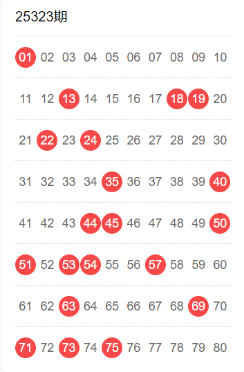 25321期命中9码 13,19,33,35,40,69,71,74,76