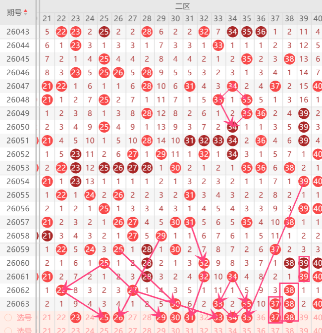 二区间注意打底号22.23.25.28.29.34.35.37.38.中关注3-4码开出机会,