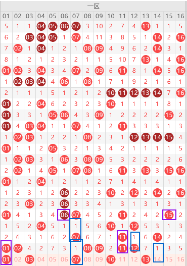 重号1 2 8 9 11 12出1-2码,1尾最热,优先考虑1跟11,其次考虑8 9出一码,防2 12二出一,1是大明号,喜欢可以用,一区走热可以跟一期,建议选4码左右,关注五码1 6 7 13 12,一胆12双胆1 12