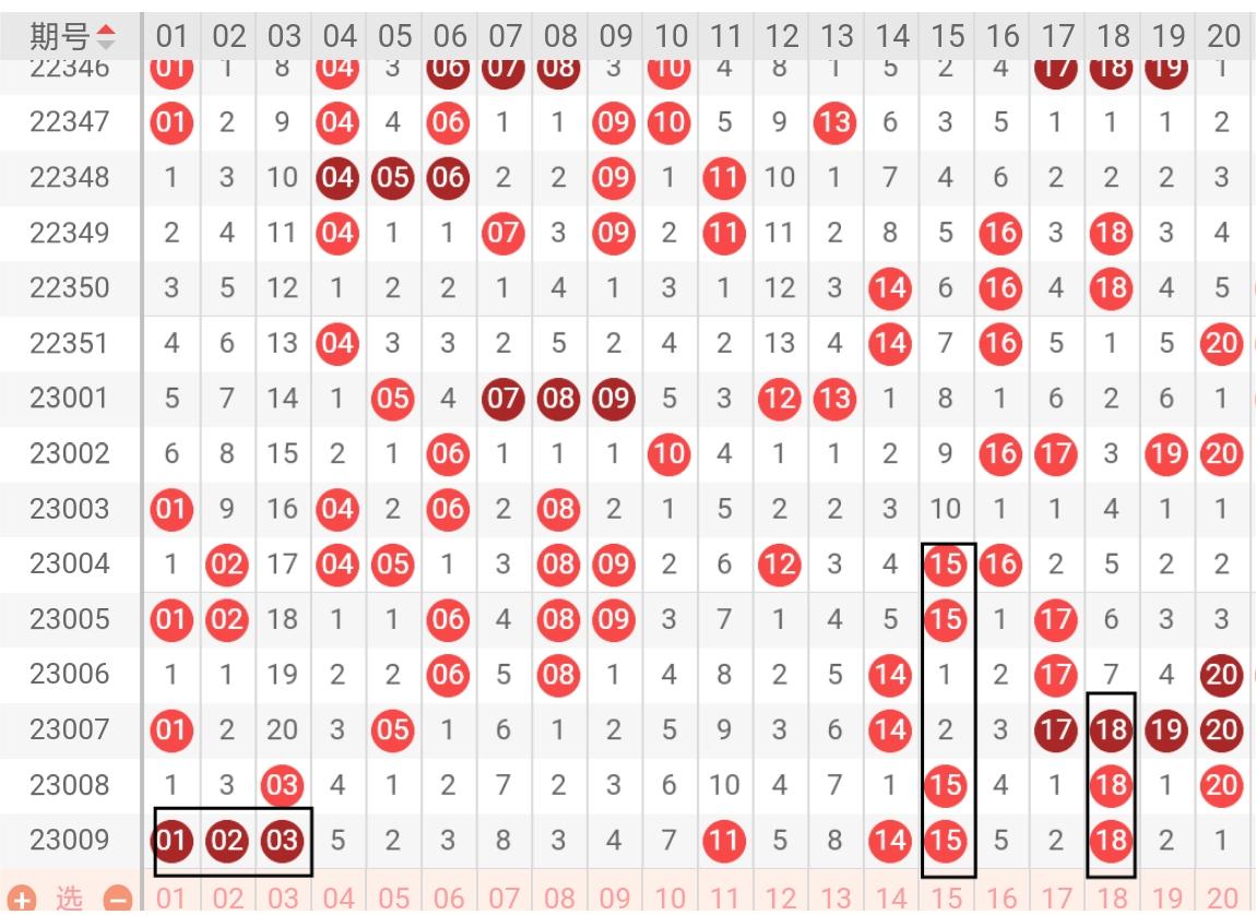 上期一区出现的号码(01 02 03 11 14 15 18)七个号码,盘面强势出码!