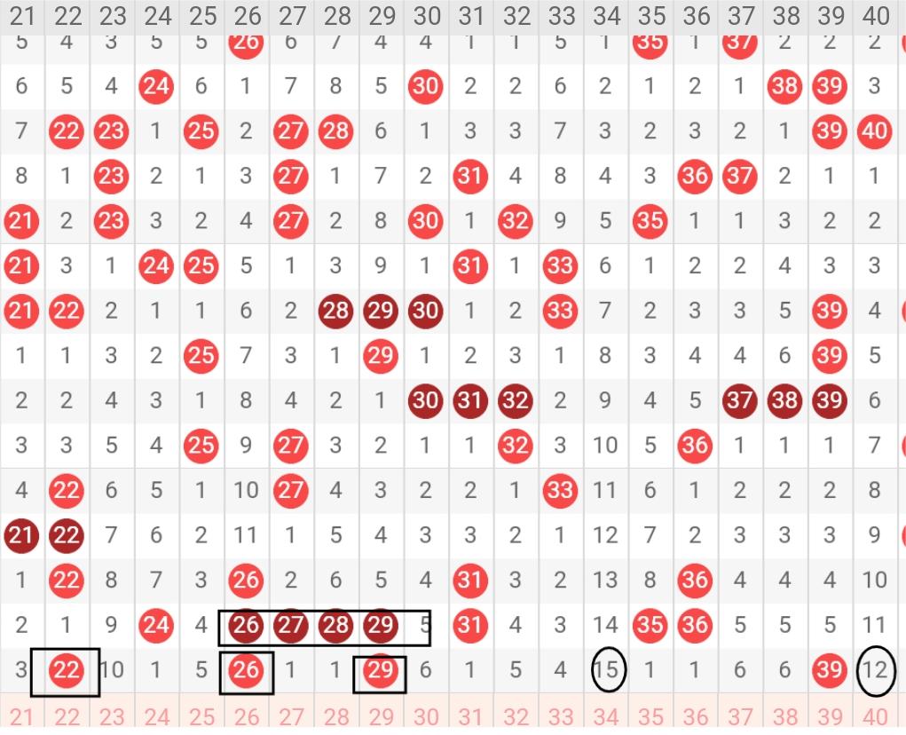 在23008期二区处于强势盘面时,出现26/27/28/29四连码,以及当期8个号码的开出,虽然在上期盘面调整,26/29出现二连出,二区34号球遗漏已有15期和40号球遗漏12期本期可以进行适当的关注,22号球在3连出后被终结,本期可以作为杀号处理,不用过多关注,本期走势39/40的组合有几率开出,33/37的组合可以当成本期的杀号组合,开出的可能性不大,二区的盘面调整出现的号码可能在2~5之间,一区和二区的大体走势我们已经分析完了。