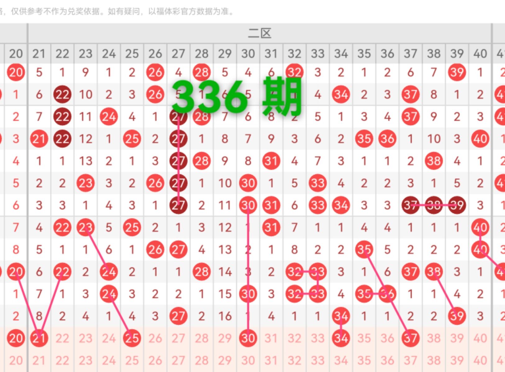 21-40号区间,上期仅开3码,低于理论均值,是近10期出号最冷的区间,本期预计回补至5-6码。21号遗漏8期,21号作为区间开端0路码,始终未现身,且邻号27上期热出,带动效应显著,本期0路整体走热。30号为0路温码,遗漏1期,热势支撑,30号邻号34、39上期形成“0路双热”,30号作为衔接码,可填补27-34之间的出号空白,连号延伸潜力突出。1路号码中,25号遗漏4期,近10期1路号码整体偏热,但本区间1路近3周仅出5个,25号作为中段1路码,近100期在二区出号31次,分布均匀,且1路偶数号码近期走势较热。34号作为上期热号,近5期出现2次,属于温热重号候选,作为1路核心热号,可延续出号节奏。37号为1路冷码,遗漏2期,7号尾数7近期近10期出现多次,冷码属性叠加高热度尾数,回补概率大幅提升。