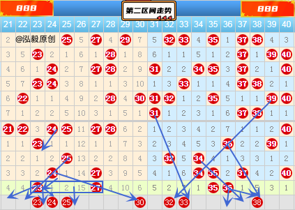 该区间有一组空三类型,本期的空三类型有4组,那么它的空三中心号肯定是要有号码开出来的,该区域的空三中心号我们可以做一下号,欲出率还是大的。其次就是34 35 36这里了,按照以往的情况,出现这种图形号码的情况下,34 35 36 37是应该要断号的,所以本期我们可以适当的放弃一下。