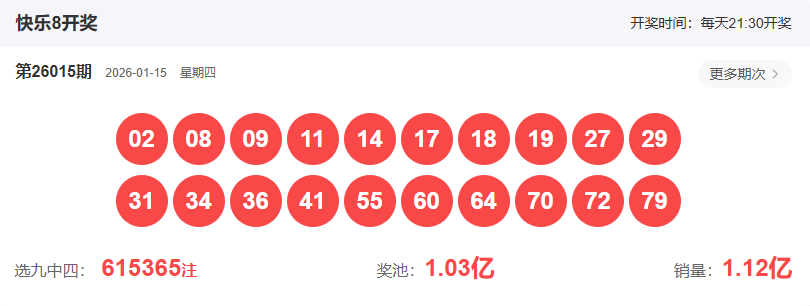 首先我们看下上期开奖结果,快乐8第26014期开奖结果02 08 09 11 14 17 18 19 27 29 31 34 36 41 55 60 64 70 72 79,和值为:696,大小比13:7,四区比8:5:3:4,出了一组双连号:08+09,一组三连号:17+18+19,直连重号出了6个,分别是:14,18,29,34, 60, 64,其中18, 29,34,60为两连重号,14为三连重号,64为四连重号,我们把01-40分为前区,41-80分为后区,则上期小号偏多,未开出冷号,均为热号和温热号。
