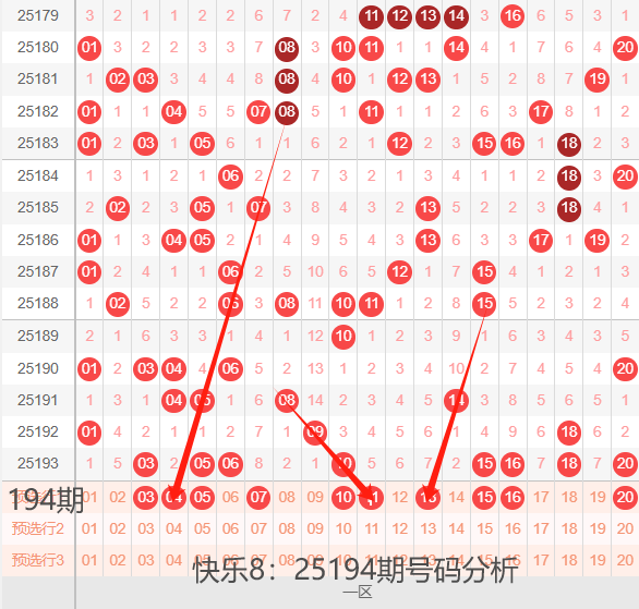 25194期,我们先看下一区间:01-20号码球,如下图:
