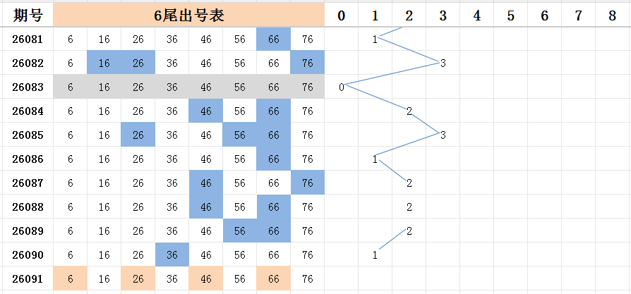 本期看好开出的范围是两码走势至四码走势之间。六尾上期开出一码走势,另外看好上期开出号码36的两个邻码:号码26和号码46,看好能够开出其中一码或者两码全开。在两个首码中,看好号码06的开出,属于一区的号码。在两个尾码中,看好号码66的开出,属于七区的号码。