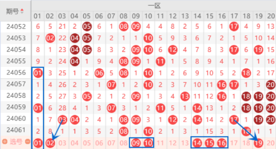 下图为01-20号数字区间走势分析图:
