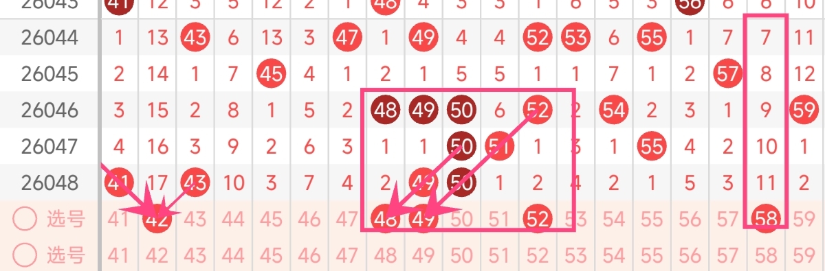 三区号码的走势相对复杂一些,出现的数量不太稳定。有时候会出现集中爆发的情况,有时候则比较冷清。三区号码相对较大,数字的稳定性稍差。在近期开奖中,48、49、52出现的频率较高。可以将这几个号码作为重点考虑对象。而且还需注意其他已经连续多期漏出的号码,本期有几率回补综合考虑,本期三区推荐关注号码: 42、48、49、52、58