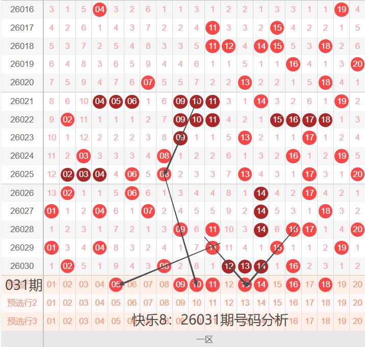 快乐8:26031期号码走势分析(26年,祝大家好运连连)