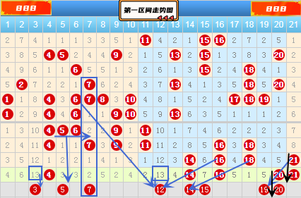 近两期在1-10数字中是冷号区域,本期出号效果也不是太好。我们还是少选为主。在1-20号数中有两个号码同时遗漏了13期,分别为3 12号都是属于冷号的。本期很大可能是要开一个出来了。3号出号趋势没有12号的明显,12号和6 9号和14  16都形成了三斜连,所以还是比较看好的。再来看4-14号数值之间有3组同期遗漏值为5 6号和7 9 11号及10 13号,这些数字中预测大概率会开出1到2个号码来。连号5 6号同时遗漏3期,可以防守它落一个号码下来。同期遗漏值7 9 11号中7号属于重号对称类型,也是可以关注一下的。在4-14号数字中同期遗漏值遗漏了8 12号数字,12号数字前面我们也就说过了,8号数字我们也是要关注的。14号数值属于3重号类型,而且它又和16 18号形成3斜连,由于近期开出的3重号比较多,这里也是有必要防守的。上图中16 18 20号形成了三角形,所以本期我们也要重点关注一下它的角重号16 20号数字。16号本期在开出来就是4重号了,希望不是太大,所以我们还是重点关注20号吧。上期开出了21号,那么本期的17 19号我们就要做防备了,因为17 19 21号是一个组合,21号已经露面,17 19号出号就不远了。