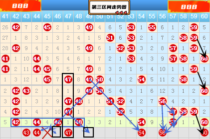 我们在来看41-60号数字区间分析如下图: