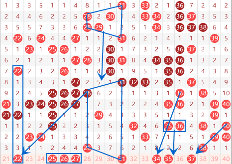 本期的连号21 22和连号48 49都是遗漏3期的号码,本期这里我们要是要抓一个号码的,我们可以重点考虑一下。本期的25 26 27我们要注意出号情况,出一个号码是没有问题的,重点考虑一下25 26的出号情况。3字头的1路号码31 34 37已经遗漏6期了,本期可以主做了,据统计遗漏到6期已经是最大了,所以本期我们要注意一下出号情况了。该区间的35 36我们要是要注意出号情况的。