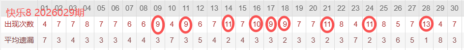 快乐8热号选择标准参考图(以30期为基准)所圈即为部分热码示意图