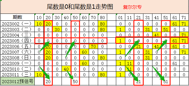 昨天尾数0开出号码10和80,完全是把这个尾数的头尾包裹了,近十期内类似这种情况还是上周一开出的号码是10,20,80,今天是否会重合上周一包裹的号码呢?还是会像上周二来个重号?