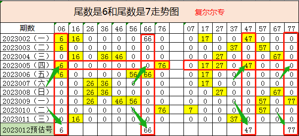 66近十期开出1次,上周四和昨天也是未出,今天会不会是尾数6继续辉煌的时刻呢?我们晚上见分晓!