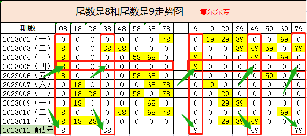 58近十期开出3次,68开出4次,38开出1次,相对来说尾数8近十期的号码开出是特别频繁的,两周都很眷顾尾数8,那么今天尾数8的号码是否还会收到眷顾呢?