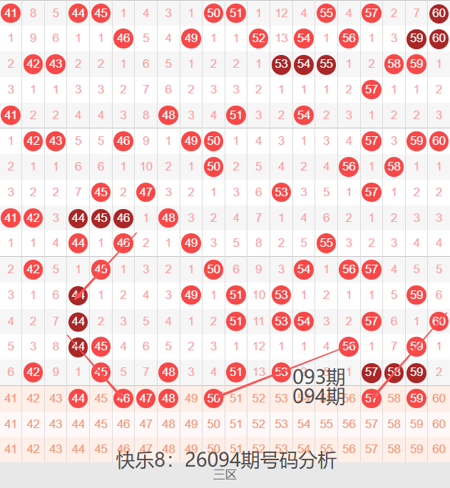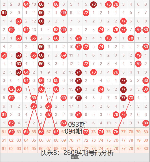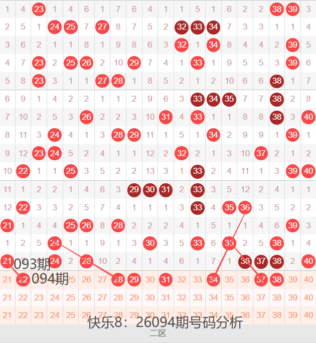 回顾26093期开奖号码:02 16 21 24 26 36 37 38 40 42 45 48 51 53 57 58 59 62 69 80 ,最近一段时间号码爆区几率特别高,目前已经连续多次出现爆区热开的情况,爆区之后基本上都是迅速回调,转换至其他区间继续暴热,大家若是能抓准区间,或许有很大的机会,但是号码的变盘规律是非常的快,很难把握,个人建议谨慎选择,不要 盲目的去操作~~