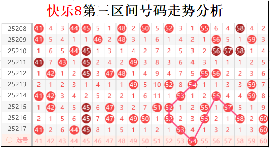 二区果然还是重号的走势,上一期六码再次有一半的号码出现重号走势,尤其是四重走势的接力。本期不排除二区再次出现重号接力的走势,不过孤码的下拉开始增多,这也代表了本期选号的风险增加。尤其是冷区开始回补号码,不排除分边形态的走强分散重号的走势。所以二区上一期实际上是最安全的走势,本期反倒成了最危险的区间。