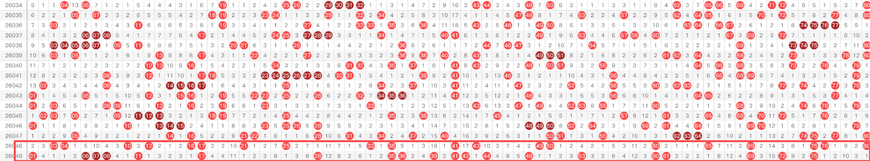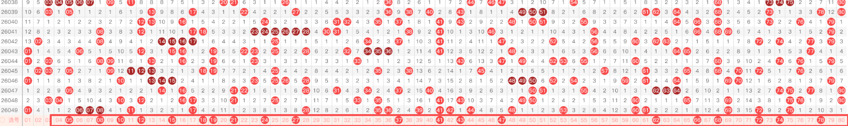 2.8分区分析法将80个号码分为8个区间(每区10个号码),通过历史数据统计,找出哪些区间出号频率较高。通常情况下,至少有12个区间会热出4个或以上的号码。