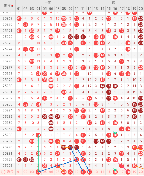 二区开出:17,19 奇偶比: 2:0 和值:36 跨度:2,上期开出2个号码,奇数号码占优势。本期三斜连走势:18,隔码斜连走势:11 12,近10期平均出号2.8枚。推荐关注号码:11、12、16、18。