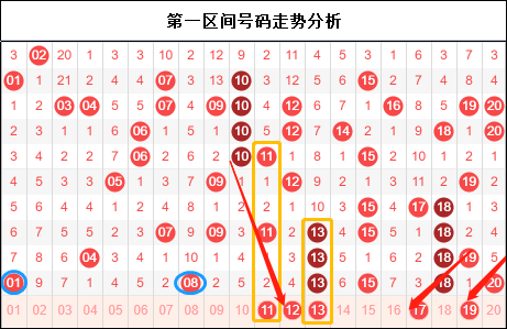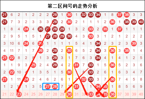 第二区间昨天出现两个两连号和一个三斜连走势,是整个开奖区间中出现最好的走势号码。今天在面临如此完美的号码下应该还是比较不错的,但是面临比较多的三斜连走势这一点要慎重选择。主线中隐藏的一条大的走势由于跨度过长,需要深思熟虑了。