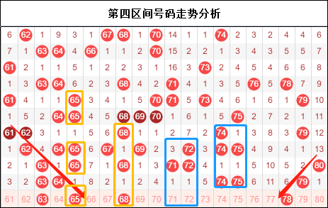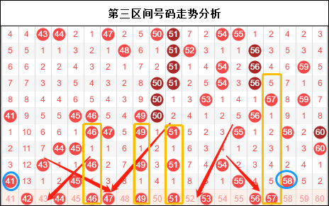第四区间昨天这个走势跟第二区间可以媲美,也是两连号的走势,尤其是63 64完美的造型。今天在区间出现变换的走势下,而且四区跨度骤然拉大,这真不是一个好事。更多的走势可以模仿前期的形态来复式号码比较好。
