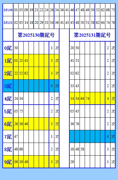 本期看好号码开出的范围是2码规律至4码规律之间。近5期开出重尾号的分别是,25127期尾号0+2+6+7各出3个、25128期尾号0出4个、25129期尾号4+5+9各出4个、25130期尾号1+2+6+9各出3个、25131期尾号4出4个。看好6期之内重尾号再次开出多码规律,概率在在九成左右。另外重尾号有开出6码的可能性,大家可以筛选一下,本期看好的五个尾号是1、2、4、5、7尾。