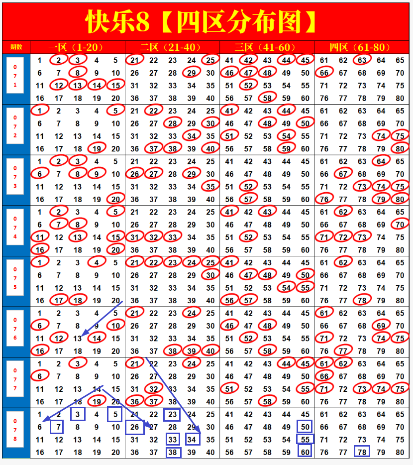 快乐8第2026078期尾号、四分区分析,上期4胆中2,6胆中3!