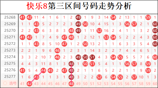 二区上一期承接一区走势仅仅开出两码,理论上来说本期有回补温态走势的可能。不过二区连续多期开出连码之后转冷估计接下来要持续几期,这里注意开出的号码属于龙头凤尾的边码,这个走势在整个周期里面曾经多期出现过,所以可以从周期里面找关联走势布局。不过目前重号走势有了延续,本期要注意重号的出现,其次间隔斜连走势上一期中断,周期上有抄作业的布局,这里可以适当跟进布局。