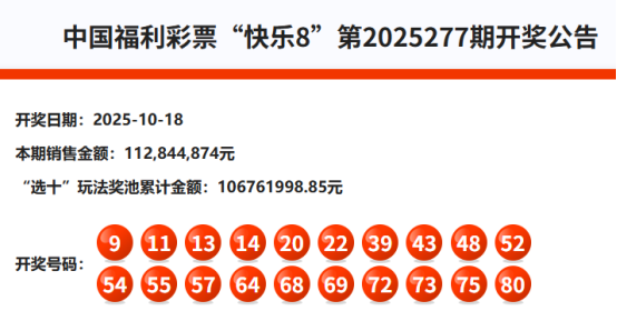 首先我们来回顾快乐8第2025277期开奖号码: