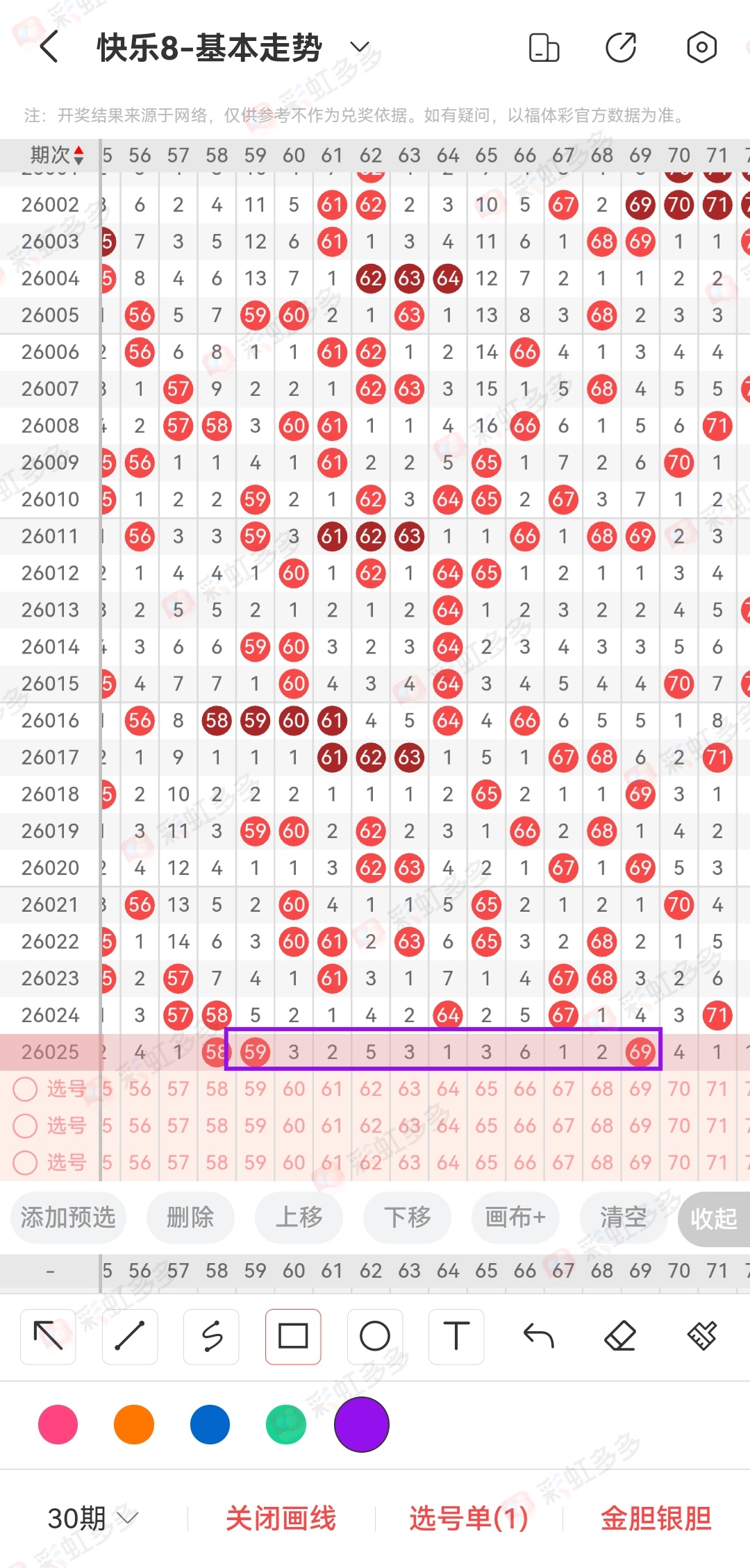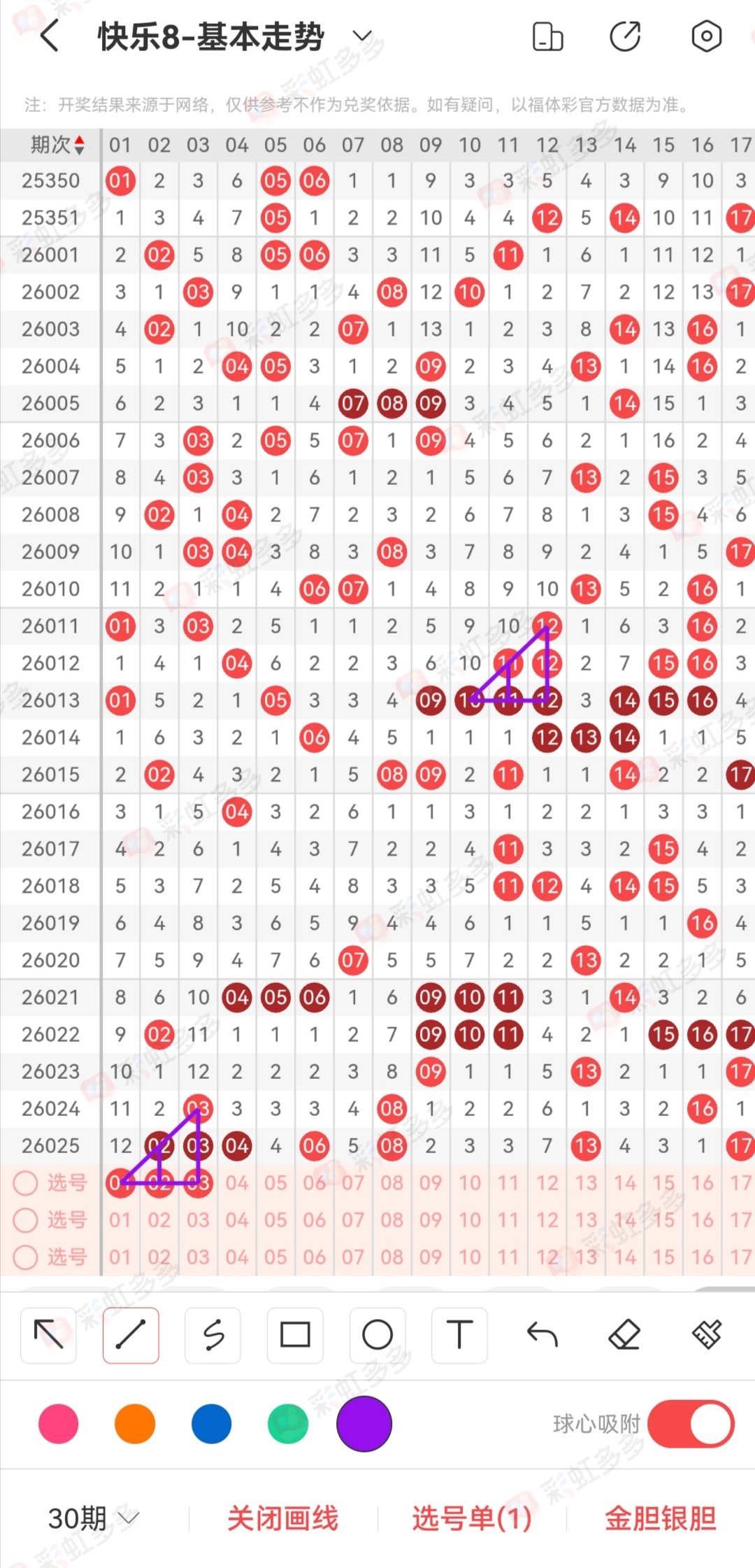 今天我们讲一下最基本的数据。都是同样的脑子,大家也都能够看到这里的01 02 03和之前的遗漏数据10期的以及再远一点4期的。我相信会有不少人都看到这个了吧。再加上03是12期遗漏走重带出2期遗漏的02,这里刚好为后面的27做准备。27是遗漏2期的,26和25都是遗漏12期的,昨天顺嘴说出考虑26的就应该同出25。现在回头来看02 03和25 26就是同方向的。那么能不能继续稳定下去。就好像我昨天晚上直接说出来的,01 02 03 25 26 27选六推荐。当然这里是有机会的,但是我们按照之前的基本逻辑就可以否定。这里我晚上告诉大家。逻辑点能不能成立,取决于你有没有推翻的理由。如果有那就直接放弃,如果没有可以考虑防守。但是我的脾气就是要么全要,要么不要。额外的我们再简单的看一下昨天的02 03 04。这里挺有意思的,我有点儿记不清楚,03走重有什么说法没有,之前数据结论是03走重顺位06 07还是间隔一期有06 07。这个晚上问问,看看大家有没有记忆的。同时这里的03 08同出,那么能不能继续走重。昨天是不是也对这里有疑问。好像基本数据也看到过同时走重,或者按照二狗的基本逻辑,同出8尾走重,08有机会走3重。那么03学习近期的43其实可以同做。但是这里有没有感觉就是一个坑,一个很大的坑。这里属于很多人都应该抛弃不掉的点。说一个比较大胆的想法,有没有可能今天空区呢。有想过但是没有重点延伸。大家仔细考虑一下,有没有可能空区。额,我是不认为空区,但是不会多出应该是比较好的想法,尤其是单开1码。单开哪一个呢,我们待会儿动态去看。