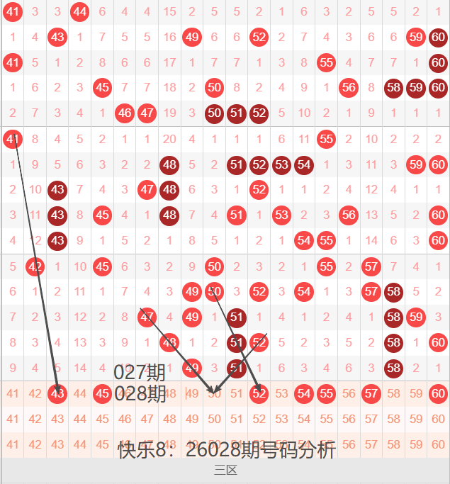 三区间41-60号码球走势,如下图: