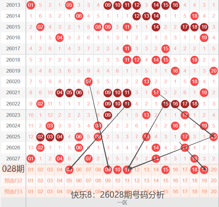 快乐8:26028期号码走势分析(26年,祝大家好运连连)