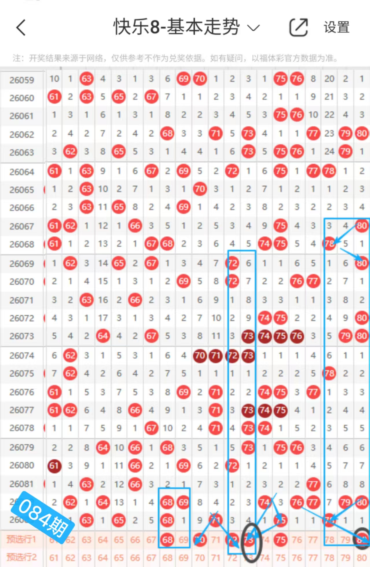 快乐八084期走势分析(上期会员文章中四胆全拖大奖+继续跟上吃肉)