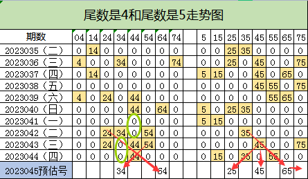 尾数4在上期开出重号44,同周期落空1期先来看本期的号码走势,在042期