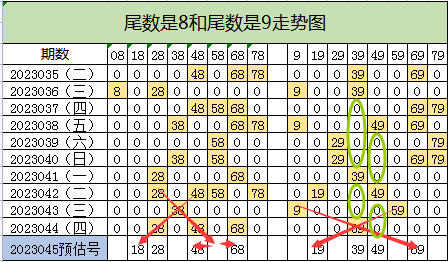 尾数8上期开出28,48,68,同周期开出38,68,78,来看看近期号码走势,