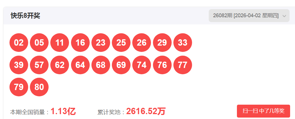一、快乐八2026082期开奖号码