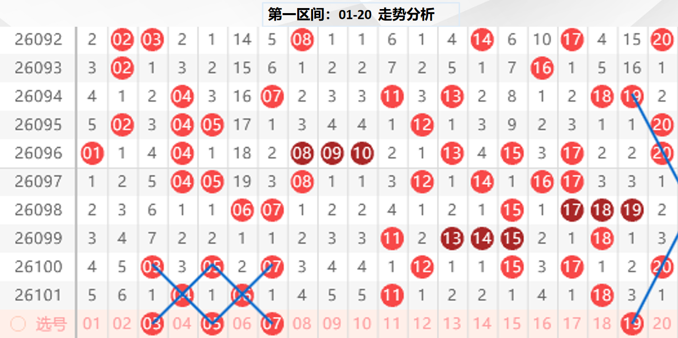 一区分析:【01-20】(走势图标注号码非小黄车大底,请谨慎参考,具体思路将在直播间分享讨论)