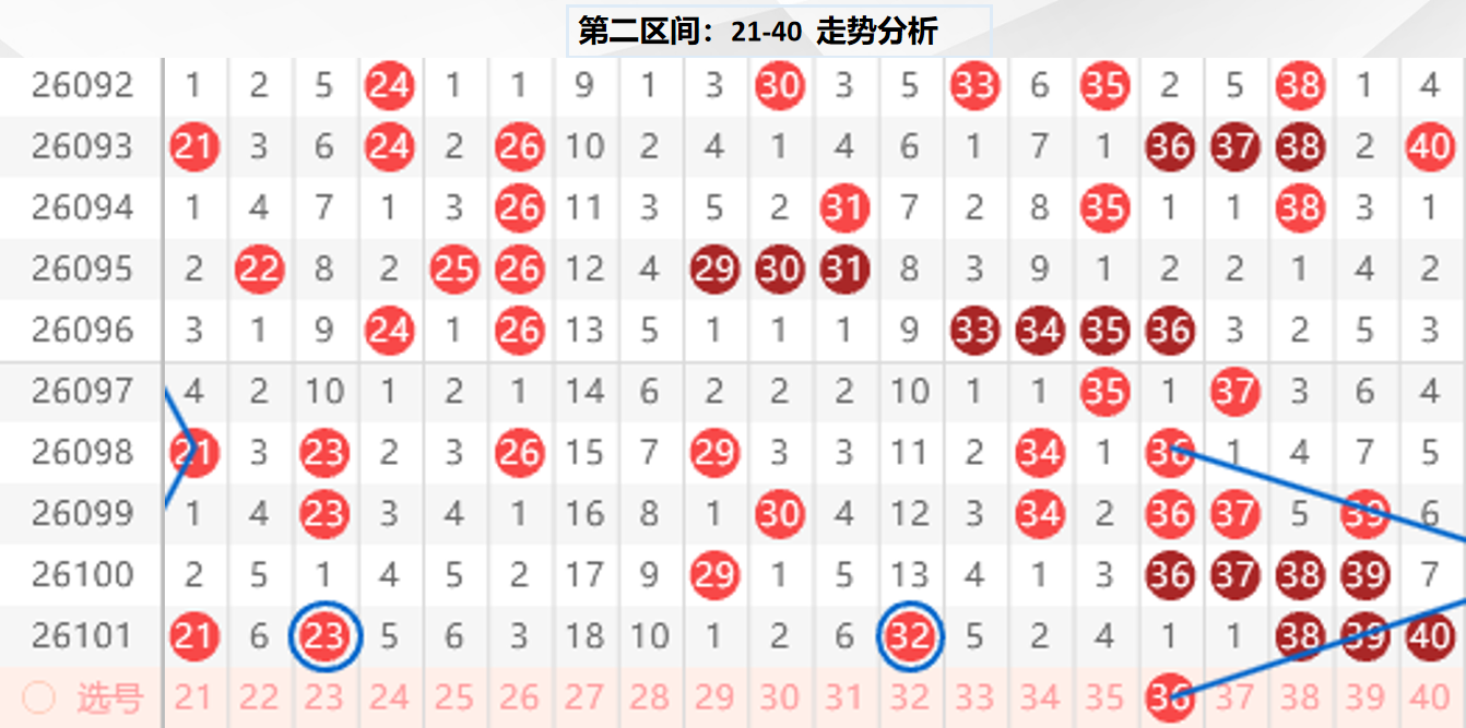二区分析:【21-40】(走势图标注号码非小黄车大底,请谨慎参考,具体思路将在直播间分享讨论)