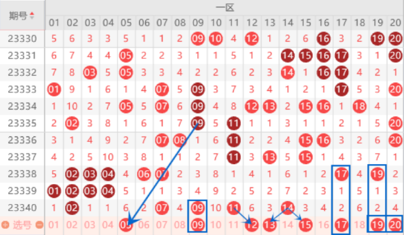 下图为01-20号数字区间走势分析图: