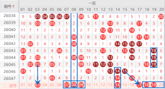 下图为01-20号数字区间走势分析图: