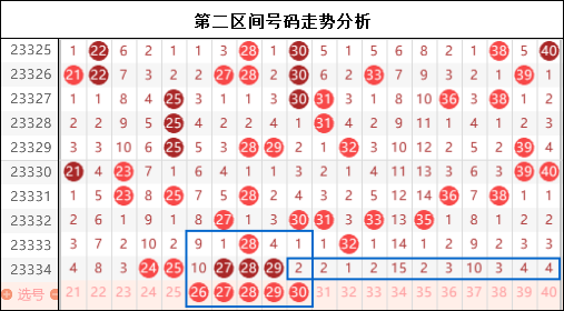 第一区间思路:一区成为爆款的区间确实有点意外,直接开出了八码的走势,尤其是重号和连码的多起走势,直接将一区哄抬到新的高度。本期结合整个区间的走势,一区显然有点三区的见风使舵的走势,本期有可能面临新的挑战,出现减码的走势,这一点尤其是要注意的。